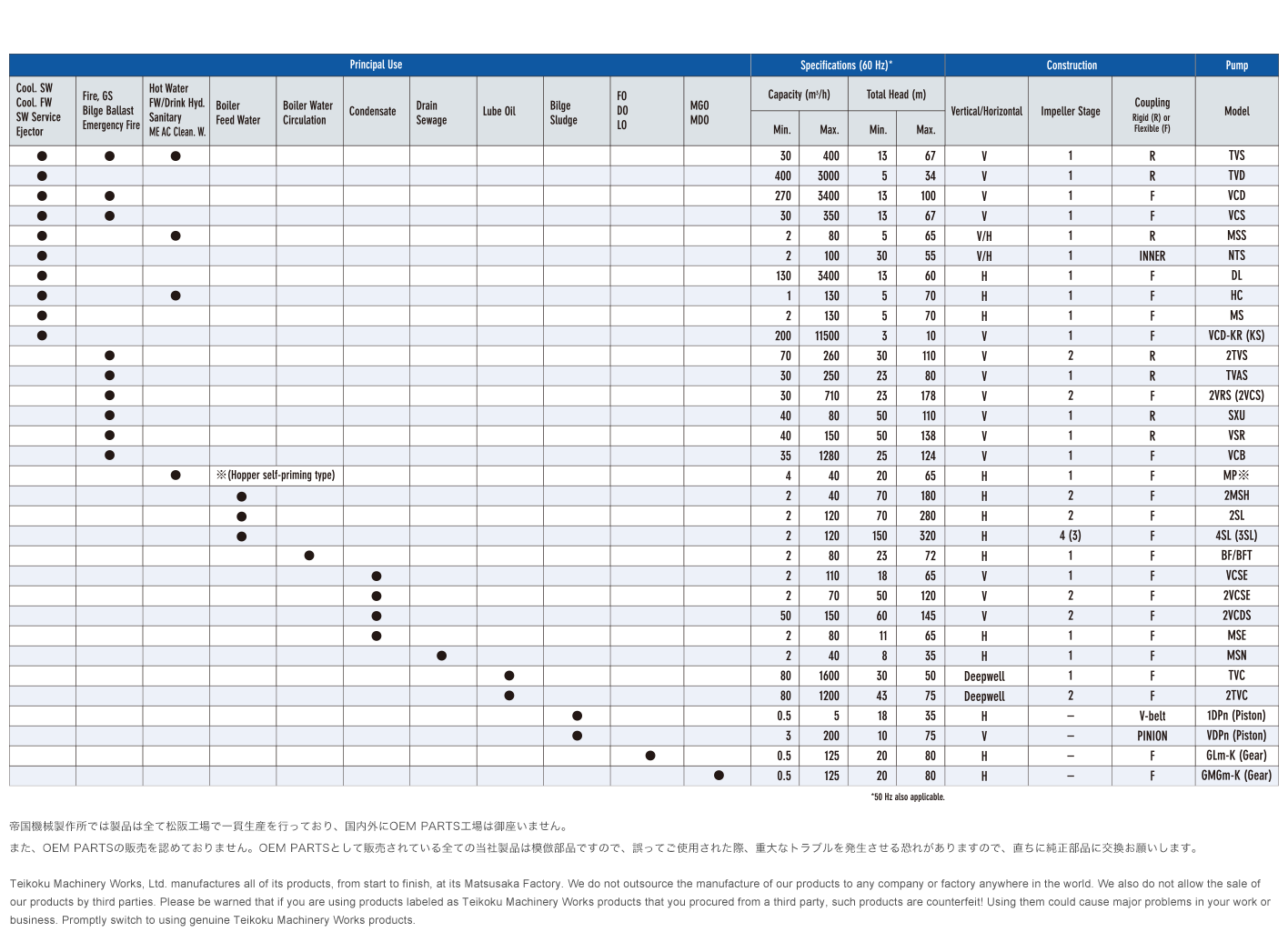 Teikoku Machinery Works, Ltd. manufactures all of its products, from start to finish, at its Matsusaka Factory. We do not outsource the manufacture of our products to any company or factory anywhere in the world. We also do not allow the sale of our products by third parties. Please be warned that if you are using products labeled as Teikoku Machinery Works products that you procured from a third party, such products are counterfeit! Using them could cause major problems in your work or business. Promptly switch to using genuine Teikoku Machinery Works products.